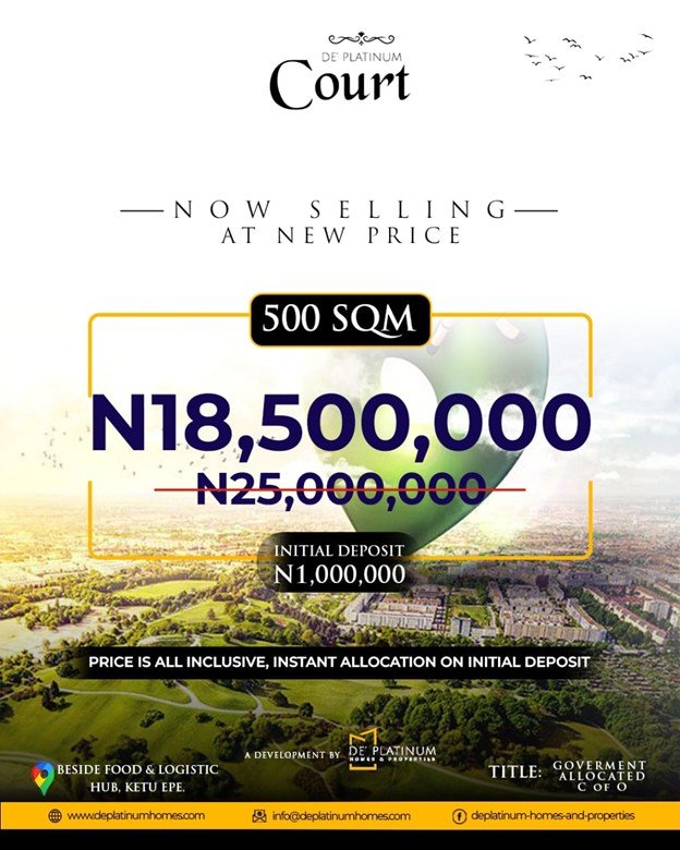 Whether you’re looking to invest, build, or live, De Platinum Court puts you at the center of Lagos’ fastest-developing region, where growth meets opportunity.